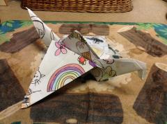 We also took part in World Mental Health week and looked at the story of Sadako Sasaki and the 1000 paper cranes. This signifies hope and peace. Every class in school made or decoated paper cranes, we decorated a huge peice of paper with pictures of things that make us happy. We then folded this into a paper crane which is proudly on display in our reading garden.