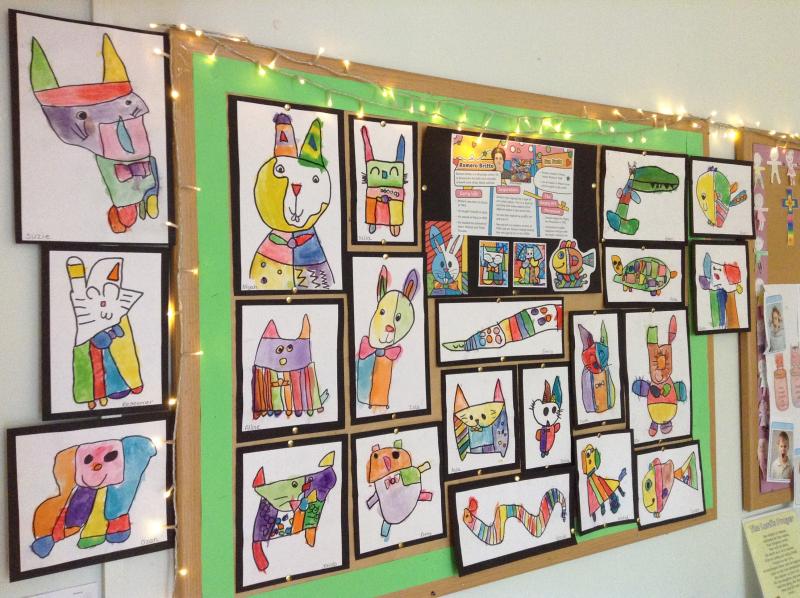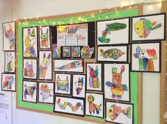 The following week we drew our own animals inspired by his art work. We painted them using watercolours before outlining our drawing with black to make the colours "pop".